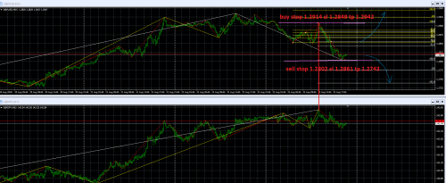 Из трёх пар GBPUSD GBPJPY USDJPY разнонаправленными на конец дня 23.08 оказались GBPUSD и GBPJPY из них GBPUSD образовала минимум, а GBPJPY коррекцию от максимума .Для GBPUSD образовался ценовой коридор 1.2909 и 1.2804,выход из которого будет означать или разворот или продолжение тренда