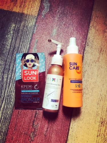 когда я выхожу на солнце я обязательно наношу крем с защитой 10 или 20, а так же мой любимый лосьон который имеет бронзовый оттенок и шимер, что помогает коже переливаться на солнышке и еще сильнее подчеркивать мой загар