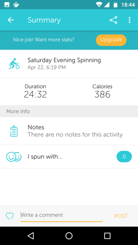 Today was spinning day !!! It's an intense workout, but I burned 380 calories. I am trying to stay within the goal of 1500 calories a day to have a loss of 1Kg per week!