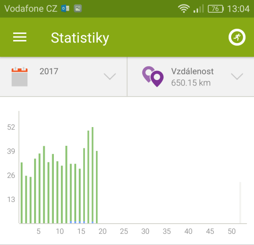 Attached is screenshot from my Endomondo account ( each bar represents run distance of one week ).