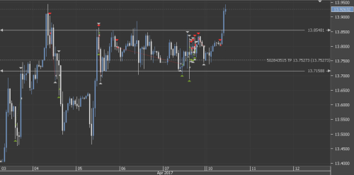 13.85 has been broken , if 13.95 is broken 14.00 is could be reached before a retracement to 13.70. I went in shot early at 13.80 for 13.75 , I am still Long Term Short on this pair. If i was not caught up i would be looking for short opportunities from 13.95 till 14.00.