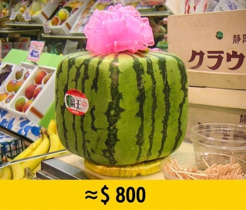 Стоимость такого арбуза от 200 до 800$. Цена зависит от доскональной формы. Если арбуз не совсем как квадрато то цена 200, а если четкая форма квалрата тогда максимальная цена 800