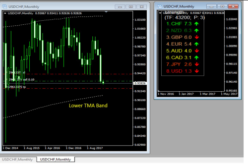 * On monthly chart, USDCHF is heading towards the lower TMA Band