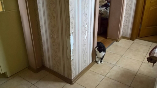 Всем привет! Наконец-то выбрался в город купил обои. Нужно сделать мини-ремонт в доме, так как мой кот обнаглел и устроил раскардаш. Полюбуйтесь на это! Так что завтра-послезавтра мне добавились дополнительные физические упражнения. Сейчас запеку курочки с картофелем, так как проголодался после прогулки по морозу. Всем удачного дня и хорошего настроения!