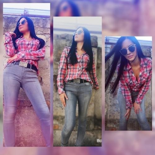 В своем гардеробе я нашла любимую хлопковую рубашку в клетку, которую мне подарила моя бабушка и это единственное что осталось мне в память о ней. , серые облегающие джинсы и широкий ремень с большой пряжей .