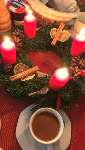 Сегодня утро и завтрак в окружении семьи. Разнообразная выпечка, свеже сваренный кофе, ассорти сыров и джемов, овощная нарезка, тарелка ароматных мандаринов. Все это в окружении такого милого подсвечника на фото, собранного исключительно из свежих веточек ели.