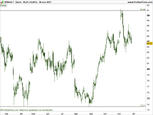 Para los que gusten de las acciones para el largo plazo, pero además quieran obtener un rendimiento extra, les recomiendo la venta de Puts. Cuando vendes opciones Puts, estás adquiriendo el compromiso de comprar unas acciones a un determinado precio, en un periodo de precio determinado. Al vender la Put cobras una prima, por lo tanto ya estás obteniendo beneficios, por el simple hecho de esperar a ver que sucede, si las acciones bajan o no de precio. Imagina por un momento que queremos comprar acciones de Renault, pero en este precio no nos gusta (esto es un ejemplo y no un hecho real). Nos vamos a nuestro gráfico de precios y vemos que en los 73€, nos parecería una compra genial. Nos tendremos que dirigir a nuestro Broker habitual que tengamos para la operativa con Opciones, si no lo tienes deberías tener uno, y buscamos que opciones disponibles hay para el precio de 73€ o el más cercano. Veremos si el vencimiento “en tiempo” nos interesa, y también la prima que ofrece el comprador de la Put. Si decidimos vender un contrato de Opciones Put sobre las acciones de Renault, cobraremos una prima. Imagina que esa prima es de 1€, como estamos vendiendo un contrato que son 100 acciones, cobraríamos 100€, a cambio de comprometernos a comprar 100 acciones de Renault. Vamos a la fecha de vencimiento. Resulta que el precio de Renault está por debajo de nuestro precio, por ejemplo 72€. Si nos ejercitan la opción, no perderemos nada, ya que aunque estemos obligados a comprar por debajo del precio, aún tenemos los 100€ cobrados. Sin embargo, puede darse el caso de que al comprador de la PUT no le interese ejercer el contrato y no lo haga, con lo que al vencimiento nos quedamos con los 100€. Siempre que la Opción termine por encima del precio, el vendedor no ejecutará la Opción, por que perdería dinero. Nosotros ganamos dinero, si el precio queda por encima de la Opción, igual o mínimamente por debajo, tenemos varios escenarios en los que vamos a ganar dinero, si o si.