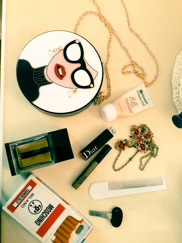 What do I have inside ? As it's quite small , I can put there only essential things. What are the essential things for me? First of all it's my phone which takes half of the space as the Iphone holder is super big , but i don't feel like taking it off because i am in love with it.