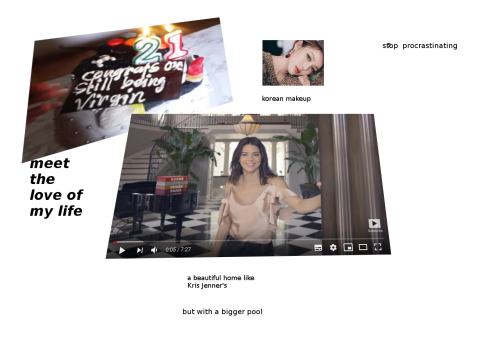 My visualization board clipped^^. So. the biggest dream of my life is having a big, glamorous house like Kris Jenner's but with a longer pool, so that I could actually swim. And meeting the man without whom I will not be able to picture my life/no idea how he looks like.