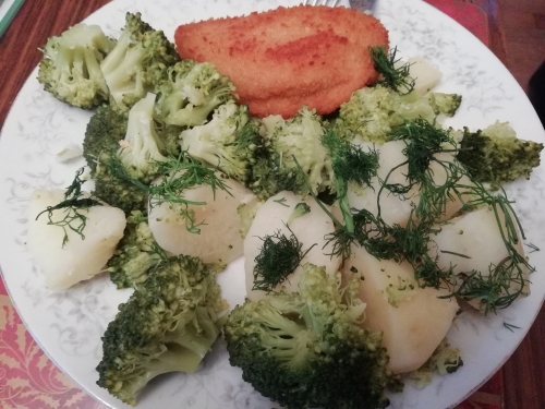 Today for dinner was cordon bleu with potatoes and brocoli, no salt added. And some dill on top. Traduire en Anglais Montrez l'original Toggle Dropdown Du fait que vous ne soyez pas identifié, nous ne connaissons pas votre langue mais nous supposons que c'est le Anglais Veuillez vous identifier ou choisir une autre langue à traduire de la liste. Connectez-vous – ou – Traduire en: Choisissez votre langue parlée Afrikaans Albanais Allemand Anglais Arabe Azerbaïdjanais Basque Bengali Biélorusse Bulgare Catalan Chinois (simplifié) Chinois (traditionnel) Coréen Croate Créole haïtien Danois Espagnol Esperanto Estonien Finnois Français Galicien Gallois Georgien Grec Gujarati Hindi Hollandais Hongrois Hébreu Indonésien Irlandais Islandais Italien Japonais Kannada Latin Letton Lithuanien Macédonien Malais Maltais Norvégien Persan (Farsi) Philippin Polonais Portugais Roumain Russe Serbe Slovaque Slovène Suédois Swahili Tamil Tchèque Telugu Thailandais Turque Ukrainien Urdu Vietnamien Yiddish Votre langue a bien été changée en