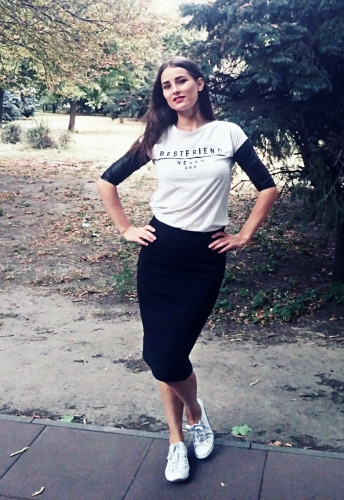 Многие считают, что юбку карандаш можно носить только с туфлями или другой классической обувью. А не тут то было... Я напялила ее с белыми кедами. И знаете что?-как по мне получилось прикольно.