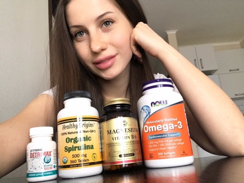 Девочки, хочу поделиться с вами витаминами, которые я пью уже около года. Надеюсь этот пост будет полезен. Эти витамины можно пить всем, они не имеют каких-то строгих противопоказаний. 1) Омега 3. 2) Магний Б6. 3) Спирулина. 4) Детримакс. Инструкцию и подробности применения расписывать не буду, так как этой информации полно в интернете, но скажу лишь одно, все эти витамины просто супер для женского организма, они уже не заменимы в моем рационе. Они способствуют хорошему самочувствию всего организма, положительно влияют на волосы, ногти и состояние кожи. Если вы попробуете хоть одни из них, вы уже через месяц заметите результат. Не благодарите))))