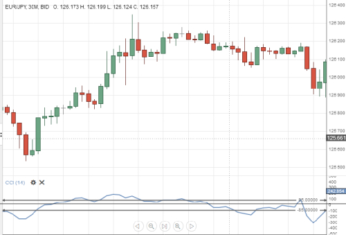 Figure 1 and Figure 2 above are example of EUR/JPY chart with CCI indicator, Figure 1 as an uptrend as CCI go above 85 and Figure 2 as downtrend as CCI go below -85.