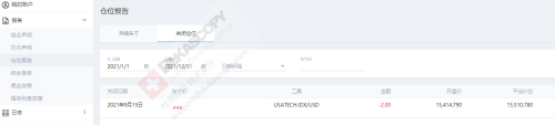 15.09.2021 订单号码 CCC 买入 1 USATECH.IDX/USD 关仓头寸 AAA , 成交价格15350.493 USD