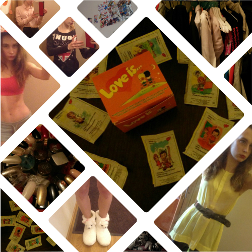 But there is one thing that I did not hesitate to throw and I need your advice! Do you remember bubble gum "Love is..."? I found small box with funny pictures explaining what is love into it... They are such pleasant! What do you thing: am I need to get rid of it? look forward to