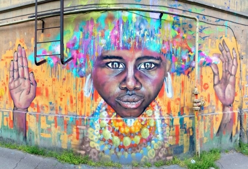 И жемчужина нашего города, рисунок украинки, сделан совсем недавно, прямо в центре, на одном из жилых домов: