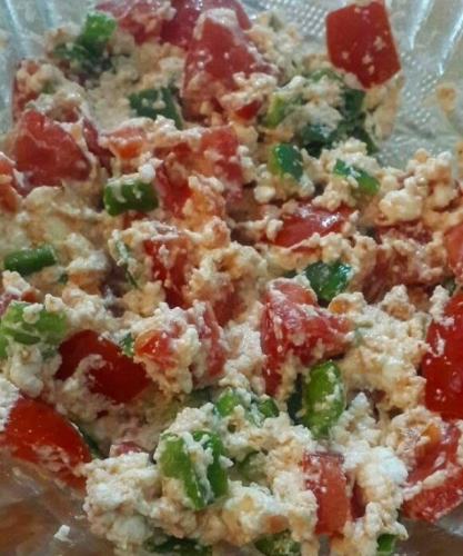итак, ингридиенты: помидоры, зеленый перец, несоленый творог, оливковое масло, кумин.