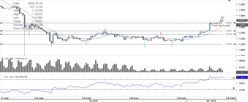 After breaking the top of the range 1.2340 - 50 GBP/USD has reached to 1.2550. It is right now hovering around 1.2517 It does seem like the price is heading towards to 1.2700. RSI has reached oversold territory but price can still further rise. Overall USD is becoming weaker and this is also adding fuel to this pair.