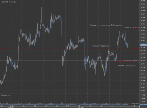 Добрый день, дорогие читатели!! Принял решение купить евро, по цене 1.1800.. если посмотреть на график, то там мы увидим что цена отскочила от поддержки, красная линия на графике. Стоп лосс вынес за приделы, за низинку прошлого торговой сессиии, а для тейк профита выбрал ближайшую цель, на уровне цены 1.1850. Удачной торговли!!