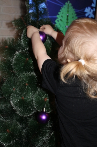 Украшает ёлку она тоже,и пусть это не очень аккуратно и правильно,но она так хочет ей так виднее. В том году она снимала все игрушки с елки,а в этом наоборот,на ней висит все что можно,и игрушки в том числе.
