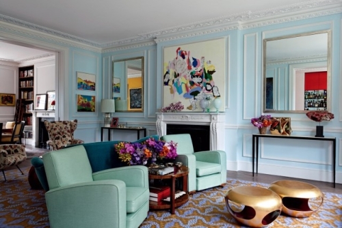 Цвет мебели – предпочтительно темно-зеленый, изумрудный, изголовье у кровати – обязательно мягкое. Главными цветами в интерьере являются нежно-голубой и розовый кварц. Возможность соответствовать цветовой гамме ваших стен модным тенденциям предоставлена краской TRIORA.