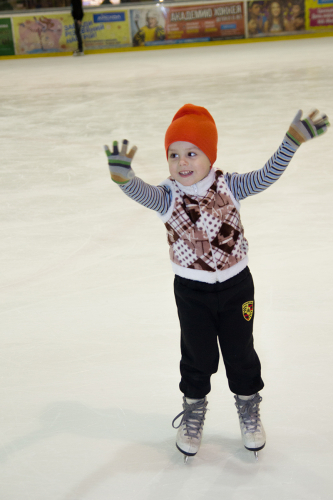 Очень интересно наблюдать, как малыши неуклюже, словно утята, учатся стоять на коньках. А уже через пару занятий они уверенно ходят по люду. Да, именно ходят. А уже на 5-6 занятие умеют немного кататься.