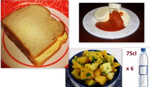 - Lunch = boiled yam and tomato stew