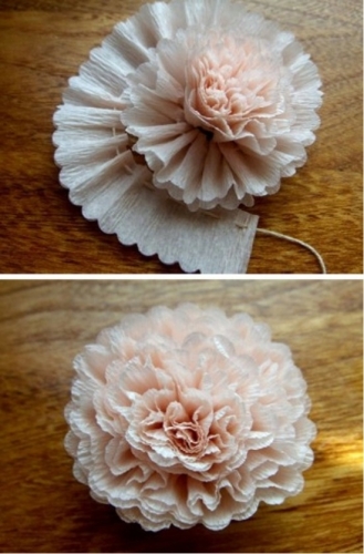 Akin's needle and yarn and then threaded with slow motion, so that it got a flower form. Remove the extra part and fix it. Do not forget to hold down the bottom: or again with a thread or a glue.