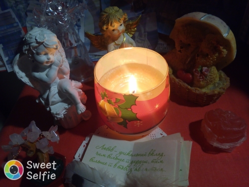 I lit candles, dressed, made a hairstyle. I dressed a blue dress. I like it.