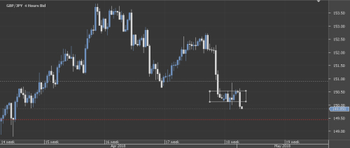 The GBP/JPY pair movement stops for a while trading between 150.50 and 150.10 . A 4 Hour candlestick close under this level which means that the pair will continue its way down to reach the level 149.50