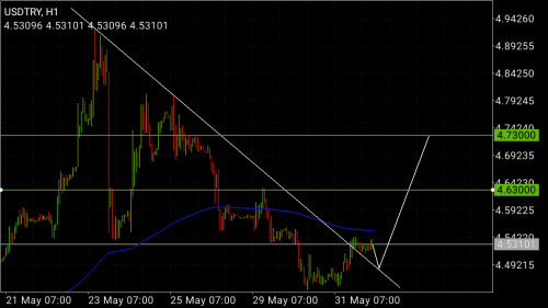 USD/TRY will descend to re-test the descending trend at 4.4800 and then will go up and his first target will be at 4.6300 and then climb to the second target at 4.7300.