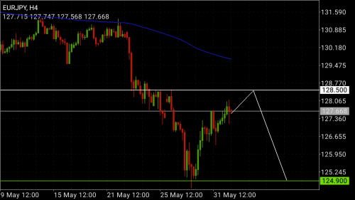 EUR/JPY will retest the strong resistance at 128.50 and then come back down and its target will be at 123.90 and I suspect it will continue to go down further.