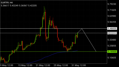 EUR/TRY will retest the strong resistance at 5.4000 and then come back down and its target will be at 5.1850 and if it break this support will also fall even further to the areas of 5.0500.