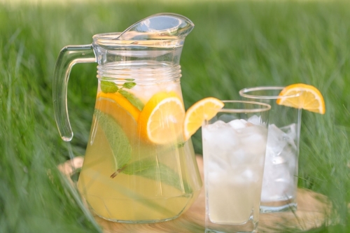 Можно по желанию добавить в кувшин кружочки лимона и мяту. Лимонад готов!