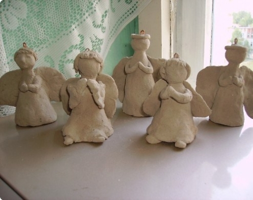 В общем, хоть погода летнее и солнце на дворе, лепили мы на мастер-классе ангелочков для елки.... хммм.... готовь сани летом?