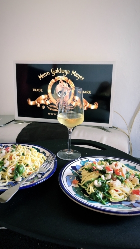 Делюсь рецептом, который я научилась делать в Италии. Паста с креветками. Что для него нужно? Паста (лапша), головка чеснока, креветки, руккола, сыр пармезан, помидоры Черри, Соль, перец, лук, масло растительное. Итак, Варим пасту в соленной воде и те же креветки ( лучше брать сразу чищенные). Варим, конечно по отдельности. Далее, разогреваем сковородку, режим мелко чеснок и поджариваем, затем добавляем туда сливочного масла и кидаем мелко порезанный лук и поджариваем до золотистого оттенка. Потом добавляем креветки и помидоры Черри и так же поджариваем их чуть чуть. Следом добавляем пасту, все хорошо перемешиваем, натираем сыр, и оставляем не много под крышкой, чтоб все ингредиенты пропитались. Готово. Отдельно я добавляю рукколу, люблю чтоб зелень была свежей. Приятного аппетита