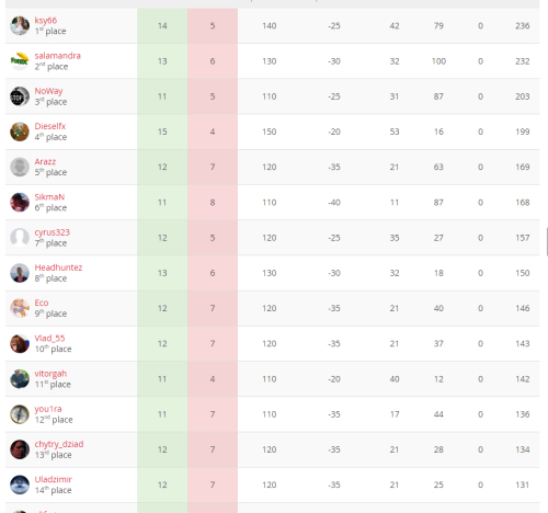 Под конец конкурса нахожусь на 8 месте ! Остается последний прогноз... Делать я его не буду, потому что считаю невыгодным по очкам, есть риски потерять ценные очки. Далее все решат модераторы, они в основном дают или не дают людям места.