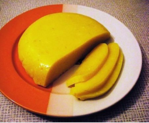 И так варим молоко чтоб кипело бросаем туда творог, и варим пока он нестанет прилипать..( около 5-10 мин) Процеживаем. Чтоб весь сок вышел. Перекладываем в глубокую посуду добавляем соду и соль наченаем мешать, (чтоб он вышел жолтый можно добавить 1 сырой желток)... он начнет пенитса.. Мешаем до тех пор пока неначнет густеть.. Потом готовим форму (формы могут быть разные главное чтоб все поместилось) смазываем ростительним маслом и выкладываем наш сыр. Ставим в голодильник чтоб остыл. Приятного апетита)))