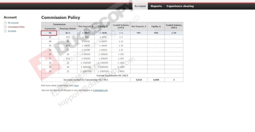 当前账号 货币对 交易量佣金政策 (参见下图) : 45 美元 /每百万美元交易量,
