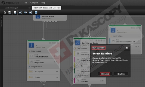 在JForex电脑交易平台已经成功登录, 并且策略已经连接到交易平台之后.
