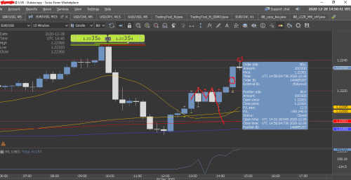 I was going to catch some 18 pips, but the market has had its own plan, and after caught an SL (marked with red round) Flipper automatically opened LONG, and later on, I closed the order manually in 12 pips, due to reflecting from the local price level of 1.2240. All in profit!